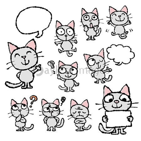 色々なポーズと表情のねこのゆるキャライラスト 商用利用可能な写真素材 イラスト素材ならストックフォトの定額制ペイレスイメージズ