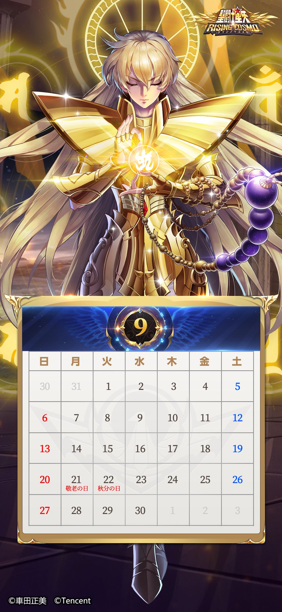 公式 聖闘士星矢 ライジングコスモ 1周年 聖闘士カレンダー 配布 9月の星座にちなんで乙女座 バルゴ シャカです 今年ももう9月 ここまで来れば なっなに 仏陀の手の平の上 スマホ の壁紙に設定するなどして ぜひ活用してね 聖